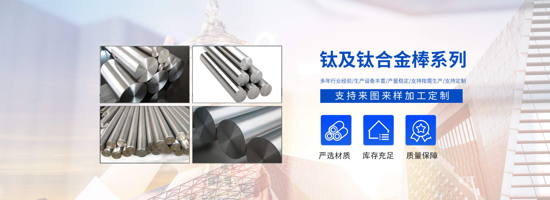 陜西辰軒鑫達金屬材料有限公司位于具有“中國鈦城”之稱的陜西寶雞高新技術(shù)開發(fā)區(qū),公司依托“中國鈦城”的雄厚的行業(yè)資源,強大的有色金屬科研及制造實力,完整的有色金屬工業(yè)制造產(chǎn)業(yè)鏈,形成了一套完整的生產(chǎn)流程,公司主要從事有色金屬的加工,生產(chǎn)及銷售及工業(yè)及民用鈦、鎳、鉬及其他稀貴金屬材料的深加工研究生產(chǎn)及國際、國內(nèi)貿(mào)易,集有色金屬材料銷售、產(chǎn)品設(shè)備制造及新產(chǎn)品開發(fā)為一體。主要以生產(chǎn)鈦材及其他金屬材料為主,主導(dǎo)產(chǎn)品有:鈦錠、鈦棒、鈦絲、鈦板、鈦法蘭等以及其他有色金屬材料:鋯板、鋯管、鋯棒、鋯鈀、鋯餅、鈮管、鈮棒、鉭板、鉭棒、鉭管等有色金屬。產(chǎn)品廣泛應(yīng)用于化工、冶金、石油、紡織、醫(yī)藥、輕工、環(huán)保···